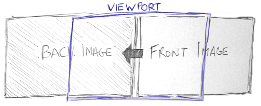 The two images start off positioned side by side with the front image off to the right of the back image. This means that the front image sits out of view (clipped by the viewport). At the specified interval, both images are animated to their left using the jQuery .animate() method.